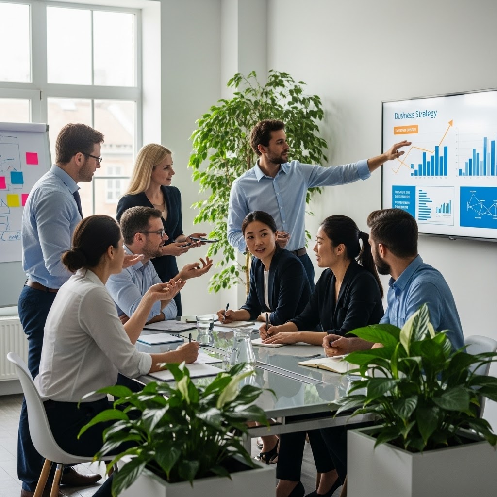 Omschrijf gewoon wat je wilt zien. Bijvoorbeeld: “Maak een professionele afbeelding van een divers team dat brainstormt rond een lichte, moderne tafel.” Gemini creëert direct een unieke, rechtenvrije afbeelding die perfect in je presentatie past.